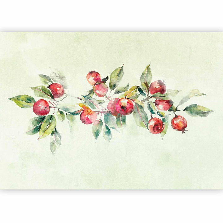 Wall Mural - Apple branch - delicate landscape with a plant and apples on a white background