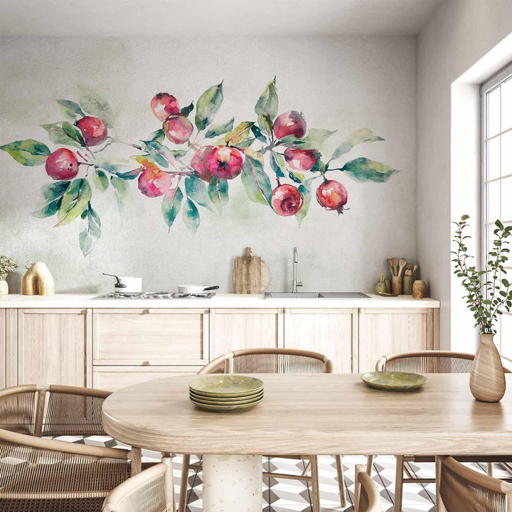 Wall Mural - Apple branch - landscape with a plant and red apples on a white background