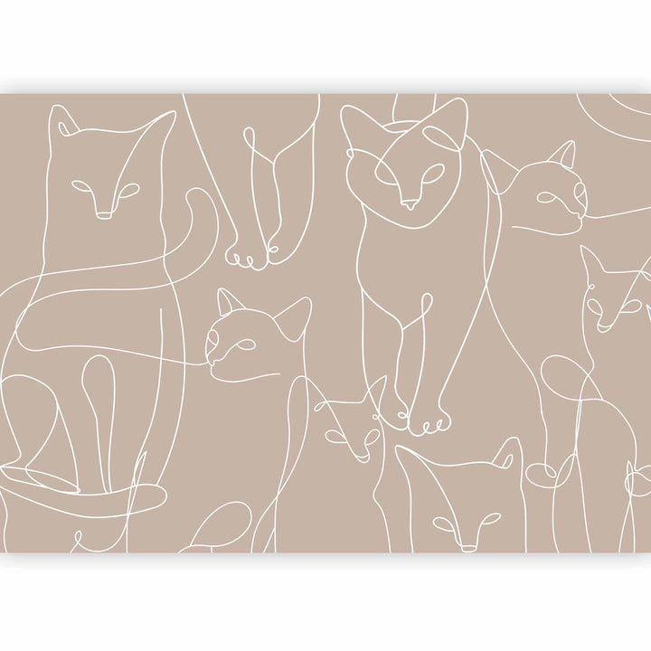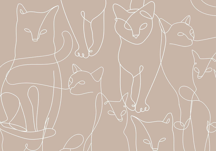 Wall Mural - Cat lineart - minimalist sketches of white cats on beige background