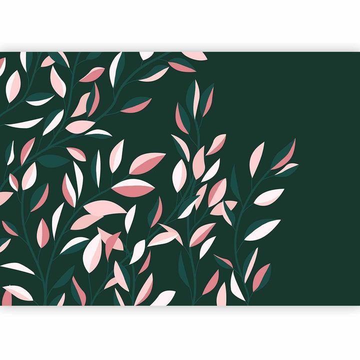 Wall Mural - Flowering vine - minimalist climbing leaves on a green background