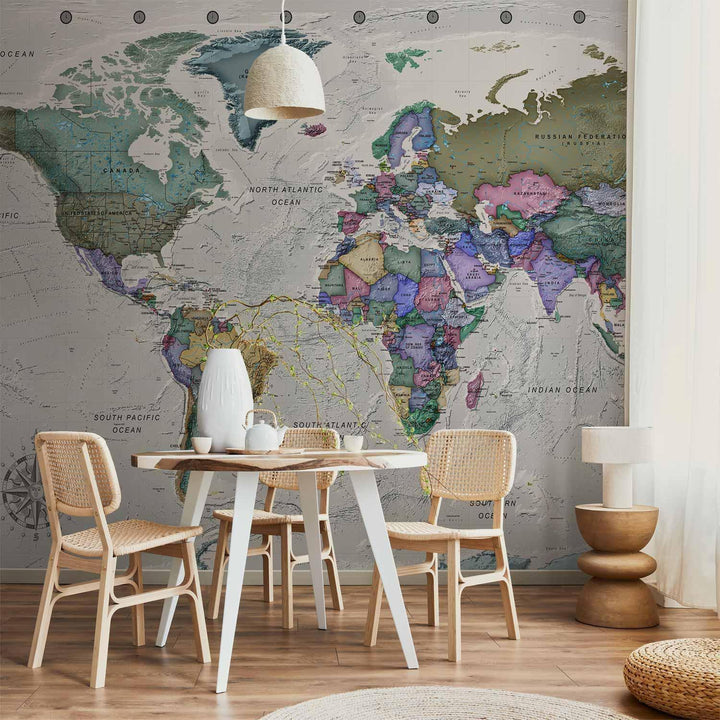 Wall Mural - Geography study - world map with signed countries in English
