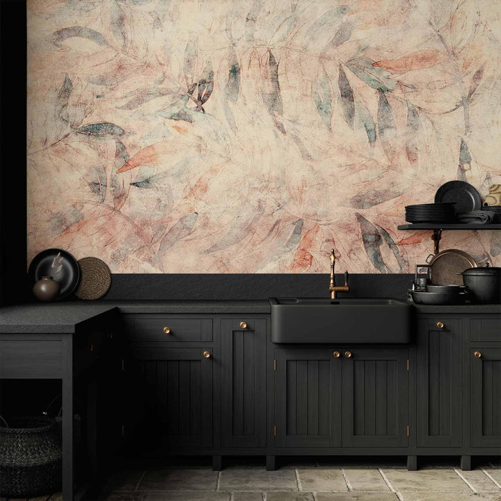 Wall Mural - Greek laurels - composition with leaves in patterns on a background in yellow tones