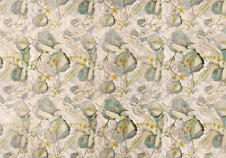 Wall Mural - Green and yellow autumn souvenirs - floral design with leaves