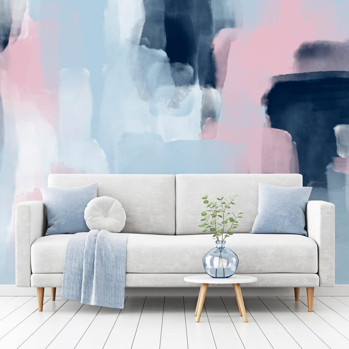 Wall Mural - Harmonious colours - abstract with blue and pink shapes