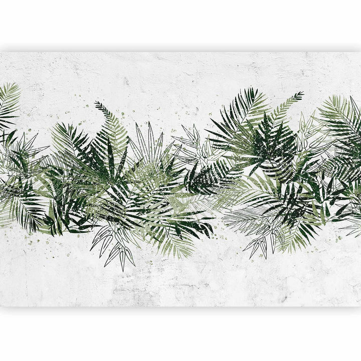 Wall Mural - Jungle and green plume - large tropical leaves on a white background
