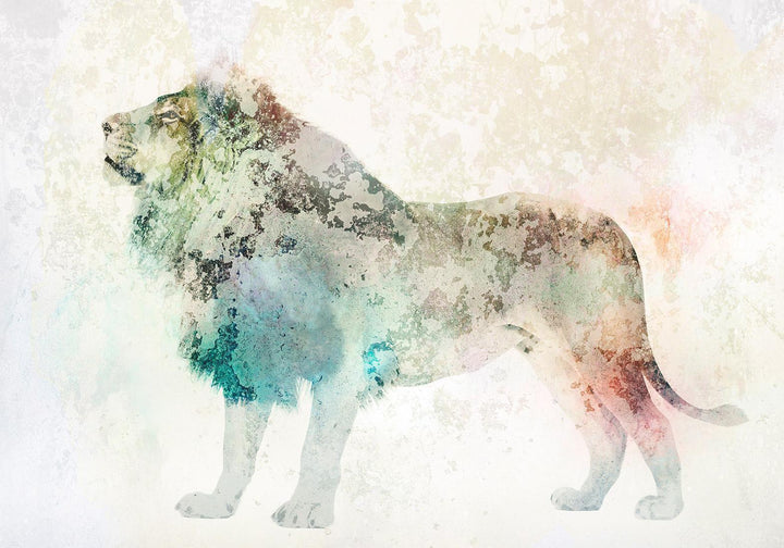 Wall Mural - King of the animals - lion on a solid textured background with coloured accent