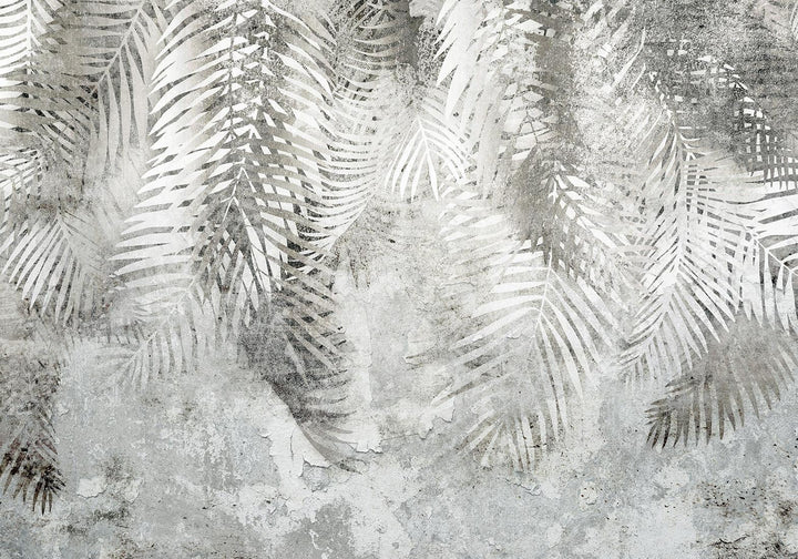 Wall Mural - Light and shadow - grey and white composition with floral motif and pattern