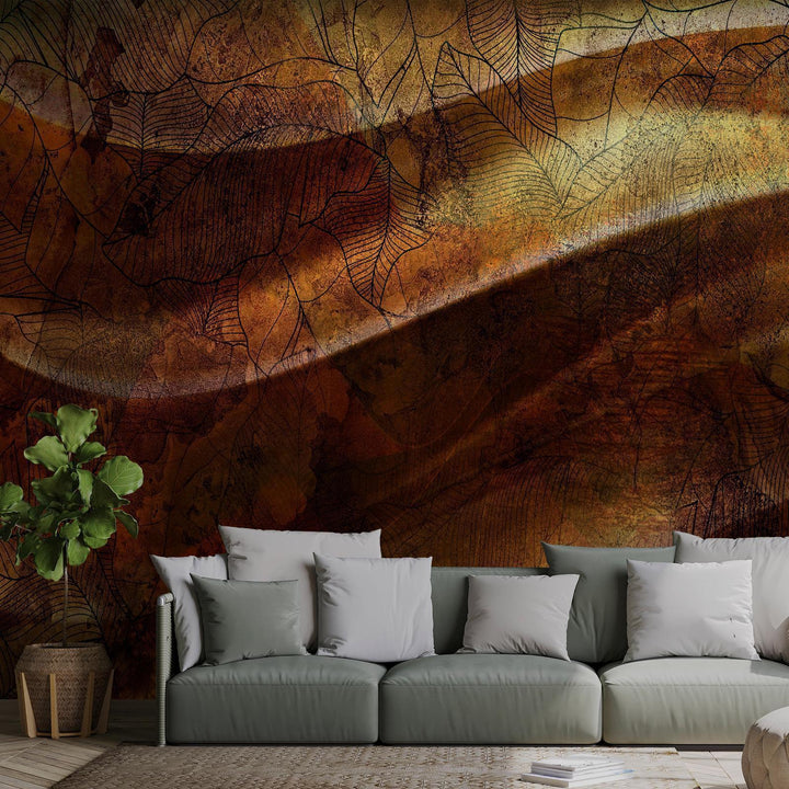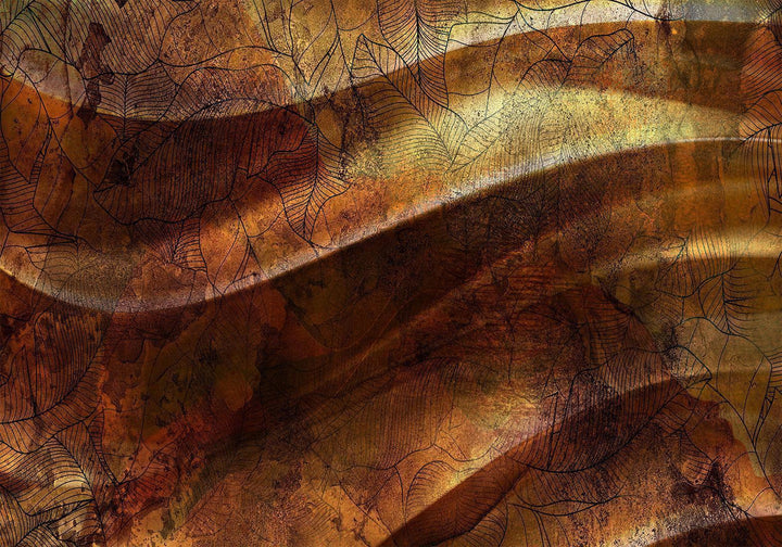 Wall Mural - Liquid gold - abstract wavy composition with leaf patterns