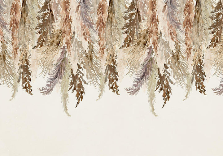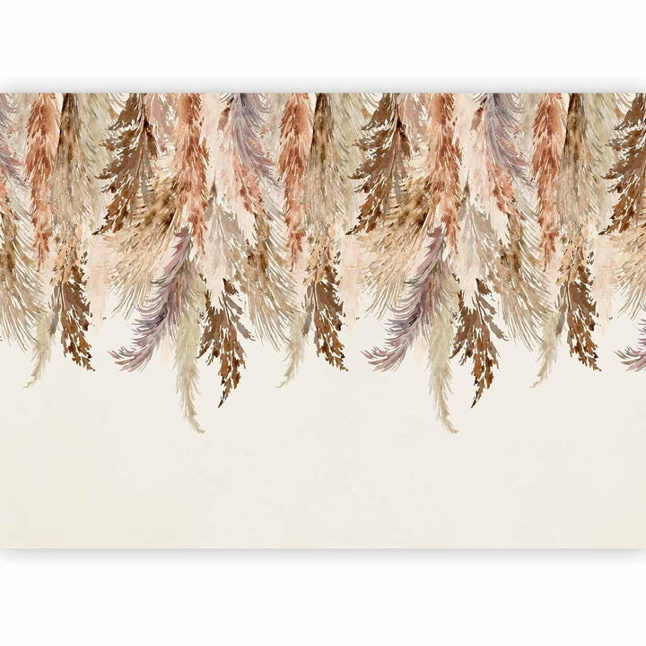Wall Mural - Minimalist boho landscape - dangling leaves in beige colours
