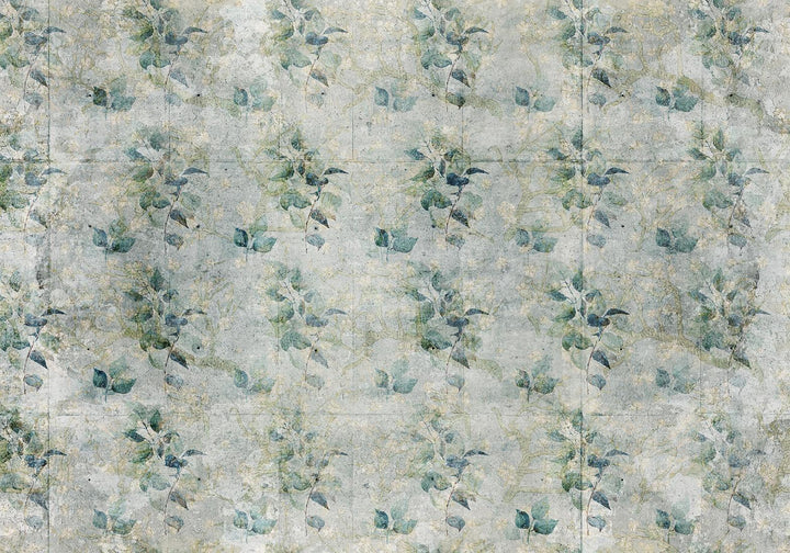Wall Mural - Mint tones - green leaf bouquets on a retro patterned background