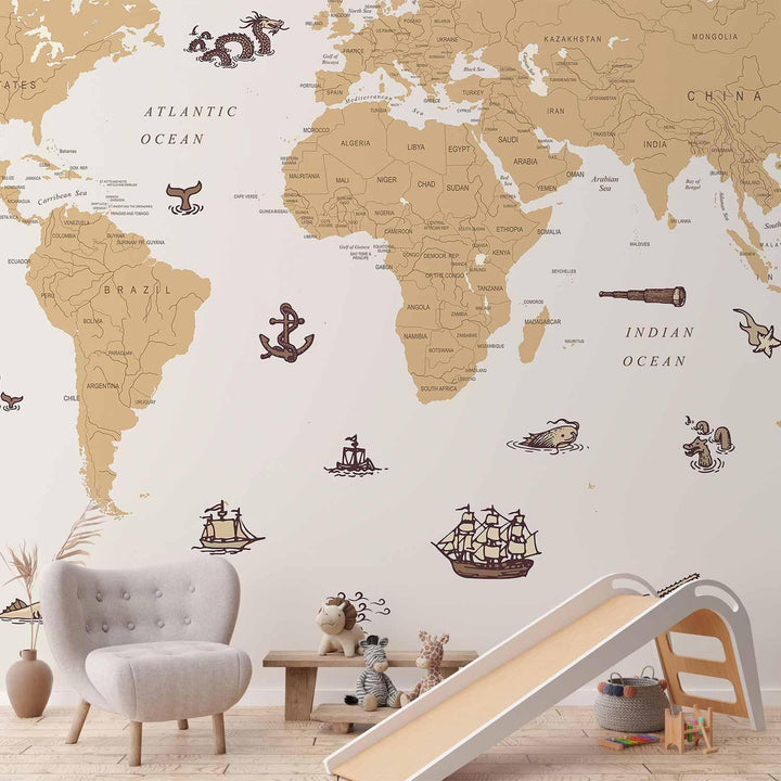 Wall Mural - Sea Wolf Map - Countries With Pirate Illustrations