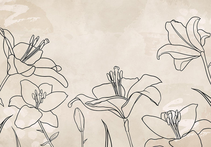 Wall Mural - Sketch of nature - minimalist lineart with lily flowers on a beige background