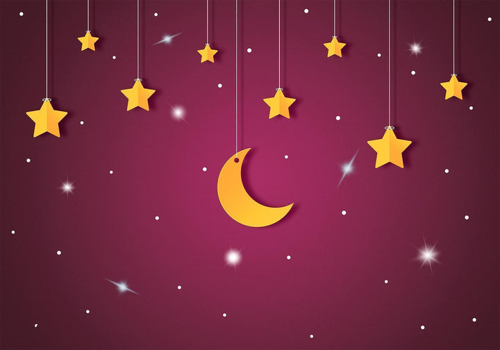 Wall Mural - Skyline - violet night sky landscape with stars for children