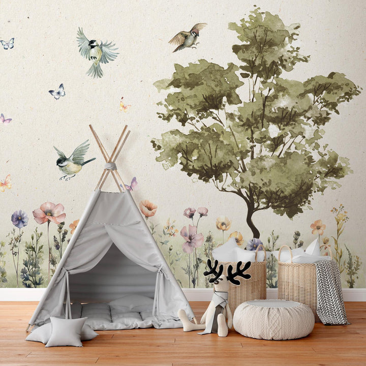 Wall Mural - Spring Meadow - a Clearing With Flowers Painted in Watercolours