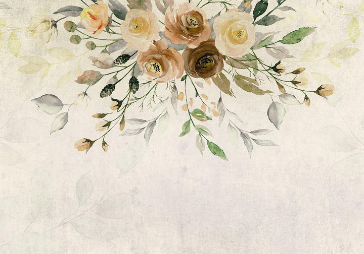 Wall Mural - Summer bloom - retro floral motif with flowers and leaves with patterns