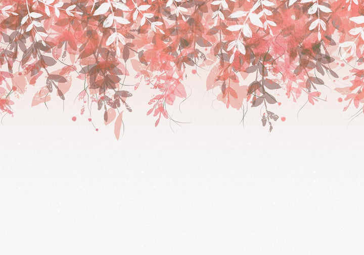 Wall Mural - Under vegetation - hanging vines of pink leaves on a neutral background