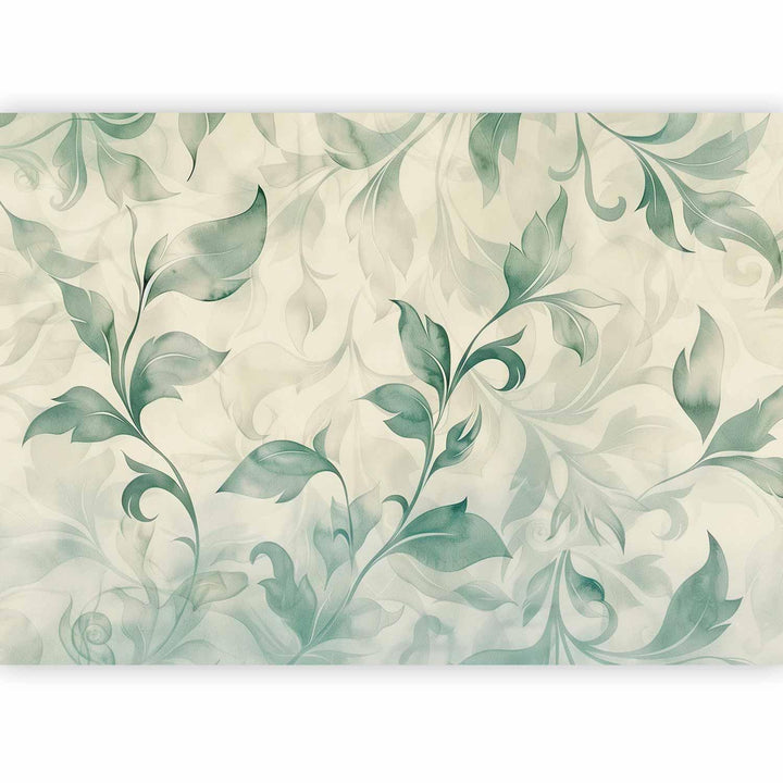 Wall Mural - Watercolor Botanical Motif Delicate Green-Beige Leaves