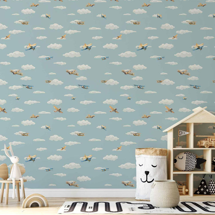 Wallpaper - Illustration - Yellow-blue airplanes against a blue sky
