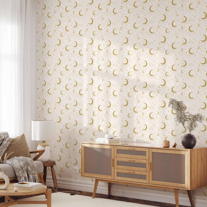 Wallpaper - Moonlit Nights - Delicate Moons and Clouds in a Warm Tone