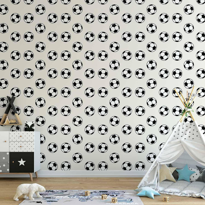 Wallpaper - Soccer - Symmetrical black-and-white soccer balls on a beige background