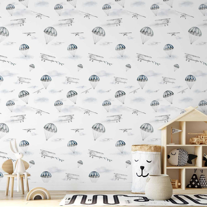 Wallpaper - Watercolor - Airplane show on a bright sky with delicate clouds